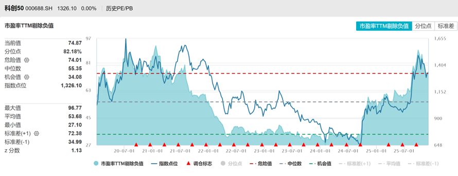 科创50注册制以来估值剔除负值PE分位数82%,PB分位数60%,处于高位的水平。
