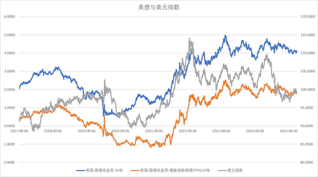 美十年期国债利率、实际利率震荡、美元小幅回落。