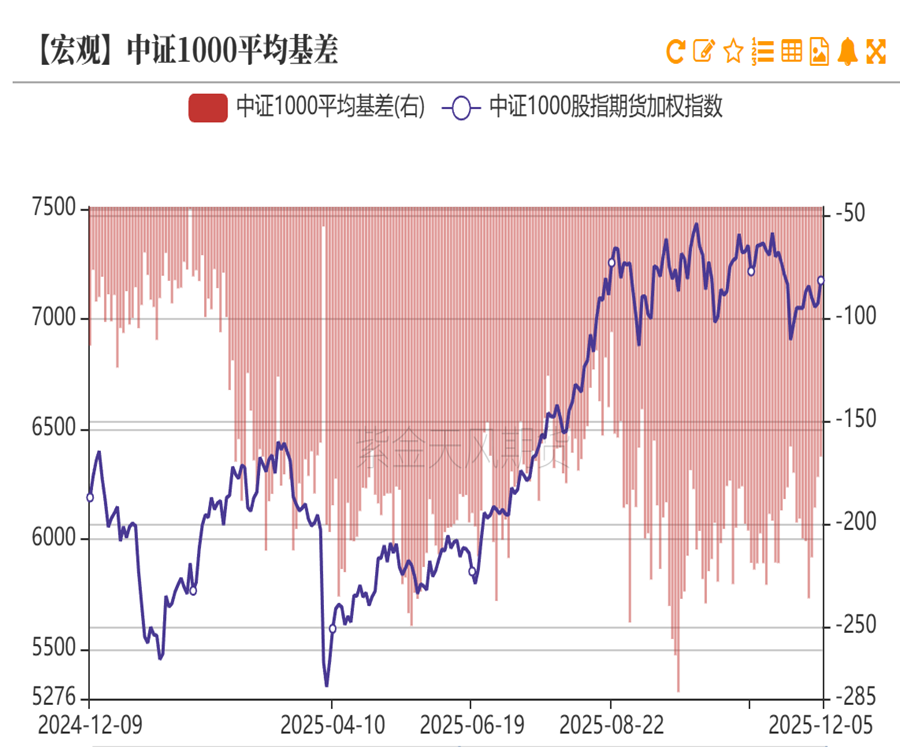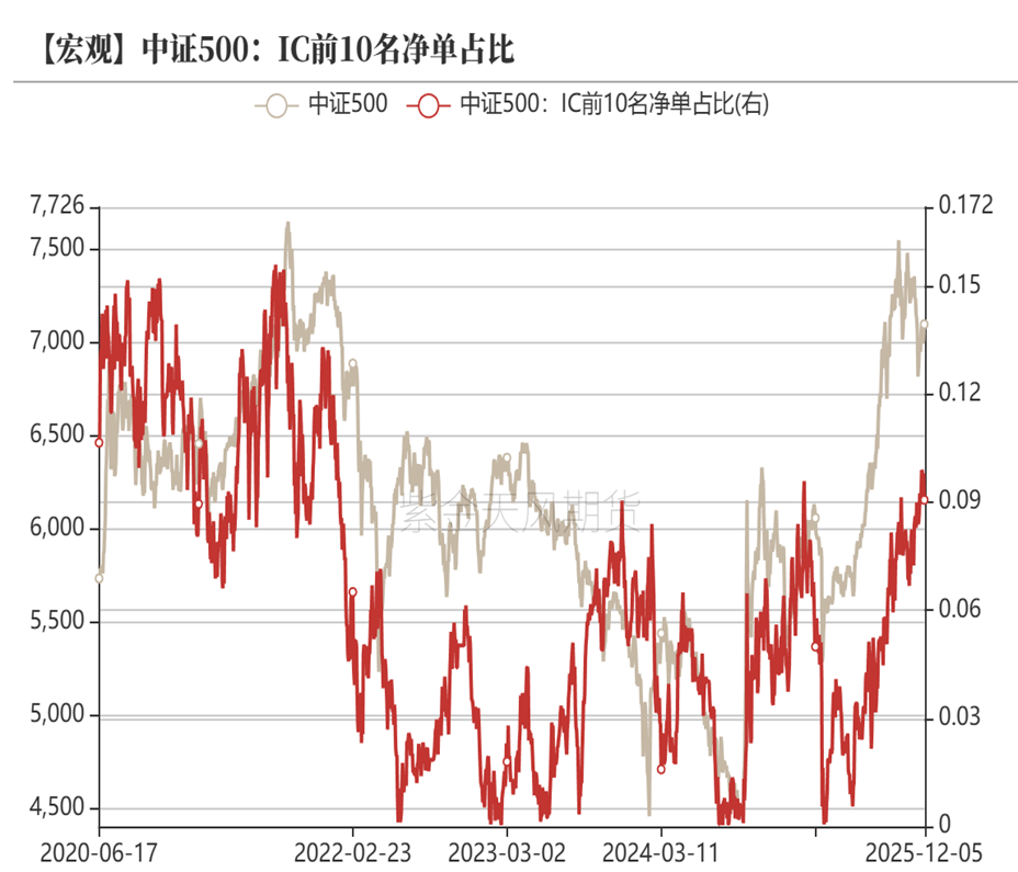 IC前十会员净空占比高位,平均基差贴水缩小,保值盘比例较高。