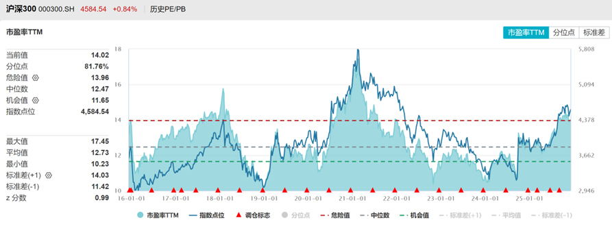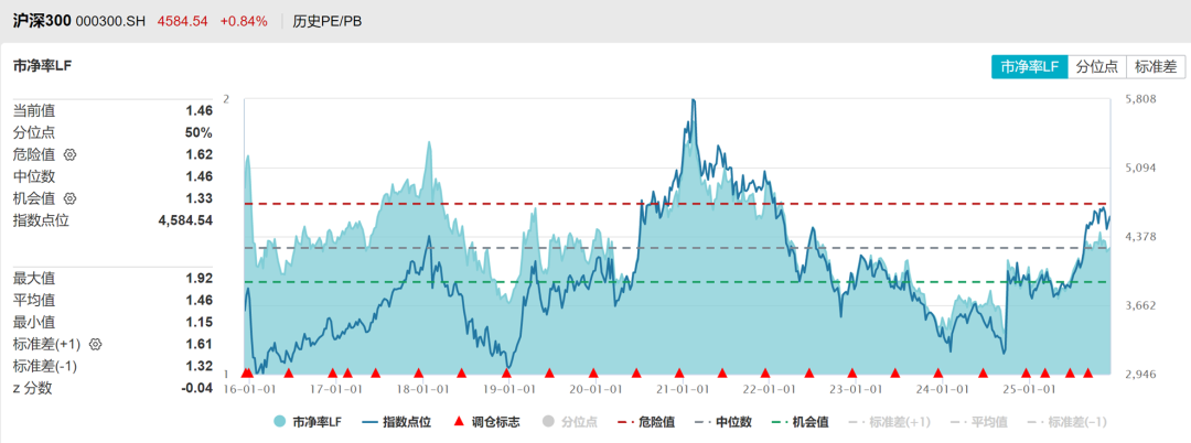 沪深300PE十年分位点80%,PB分位点50%,处于中高位。