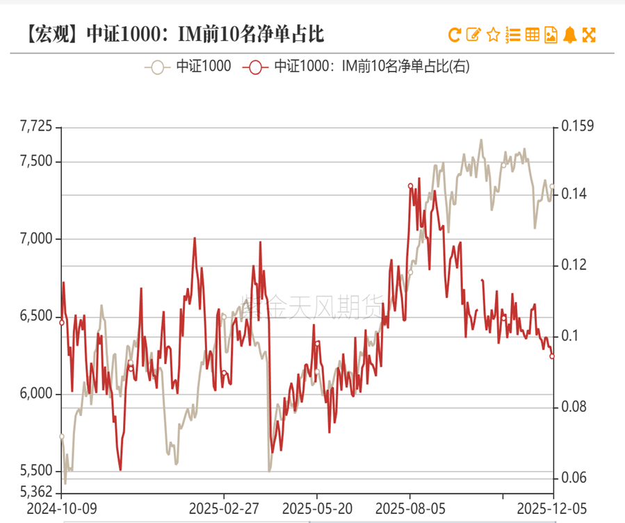 IM前十会员净空单占比下降,平均基差贴水减少,保值盘减少。