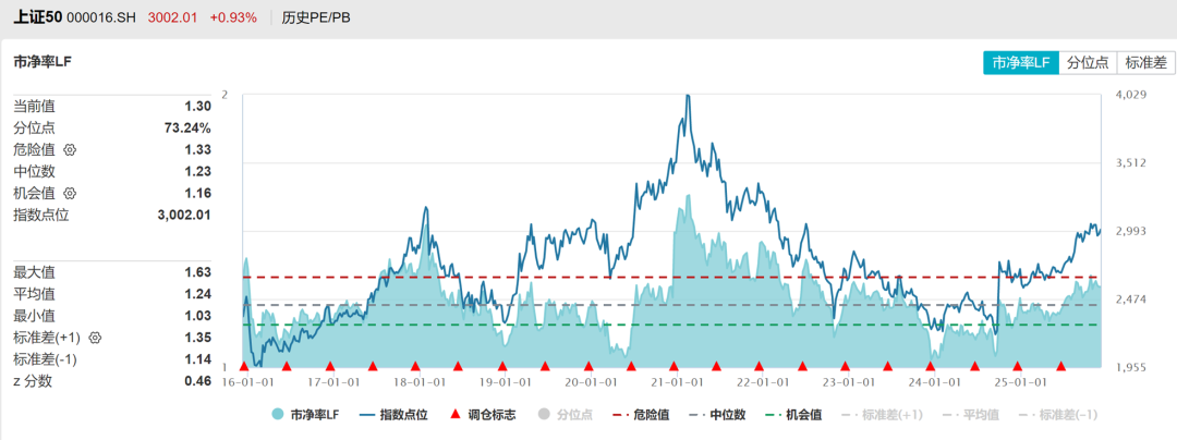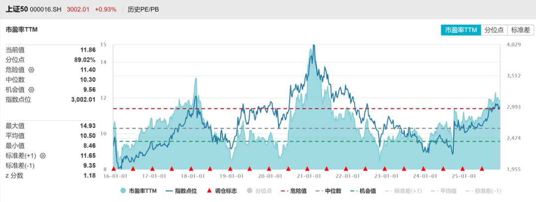 上证50PE十年以来分位点89%,PB分位点73%,处于历史中高位。