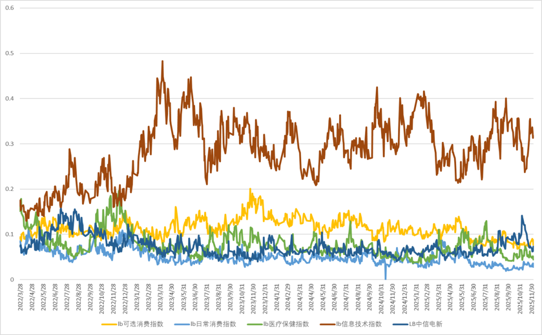 新经济行业中新能源成交占比显著回落,信息技术指数成交占比小幅下跌,医疗保健、可选消费、日常消费成交占比继续地面。
