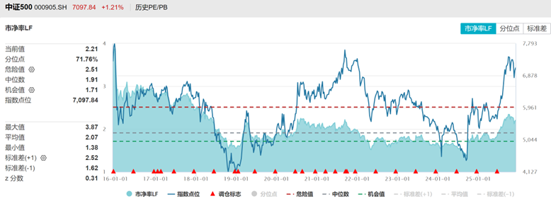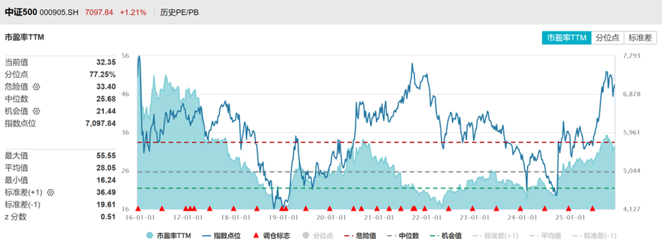 中证500PE注册制改革以来PE分位点77%,PB分位数71%,处于中高位。