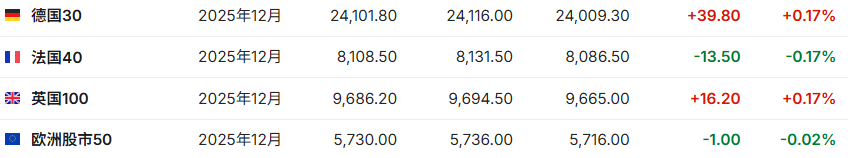 2.截至发稿,德国DAX指数涨0.17%,法国CAC40指数跌0.17%,英国富时100指数涨0.17%,欧洲斯托克50指数跌0.02%。