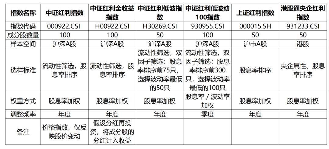 红利指数有哪些?