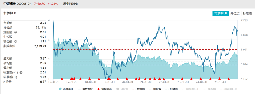 中证500PE注册制改革以来PE分位点78%,PB分位数73%,处于中高位。