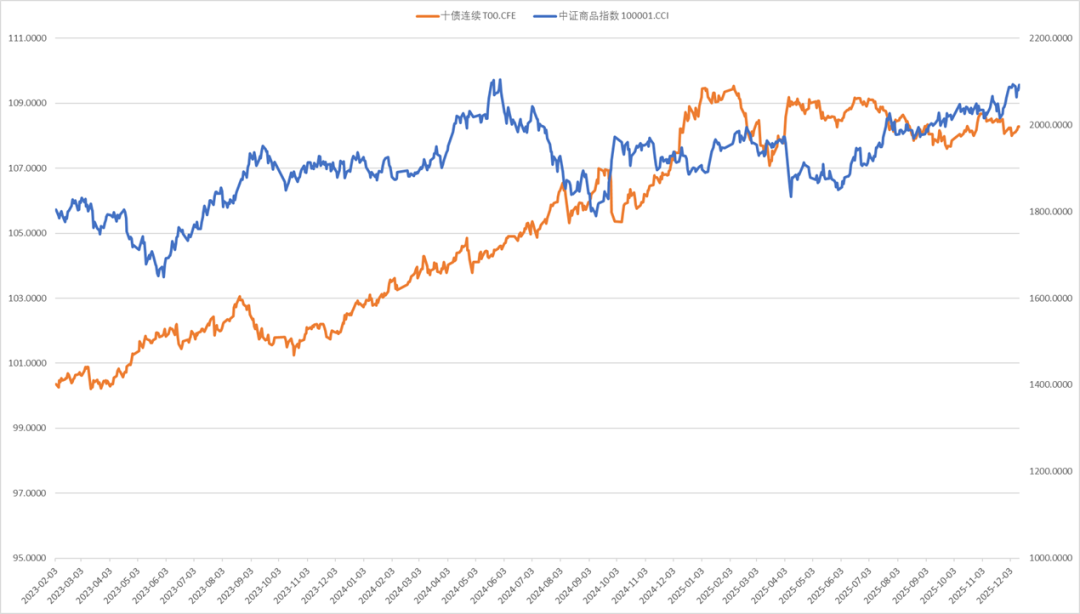 上周十年期国债期货价格震荡,中证商品指数上涨。多晶硅、碳酸锂、焦煤等领涨,工业硅、铝等领跌,白银、铜高位回落,黄金震荡偏强,铁矿石、原油低位震荡。生猪、农产品继续低迷。