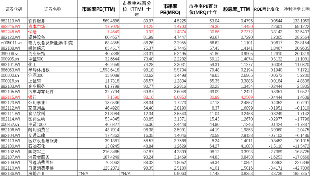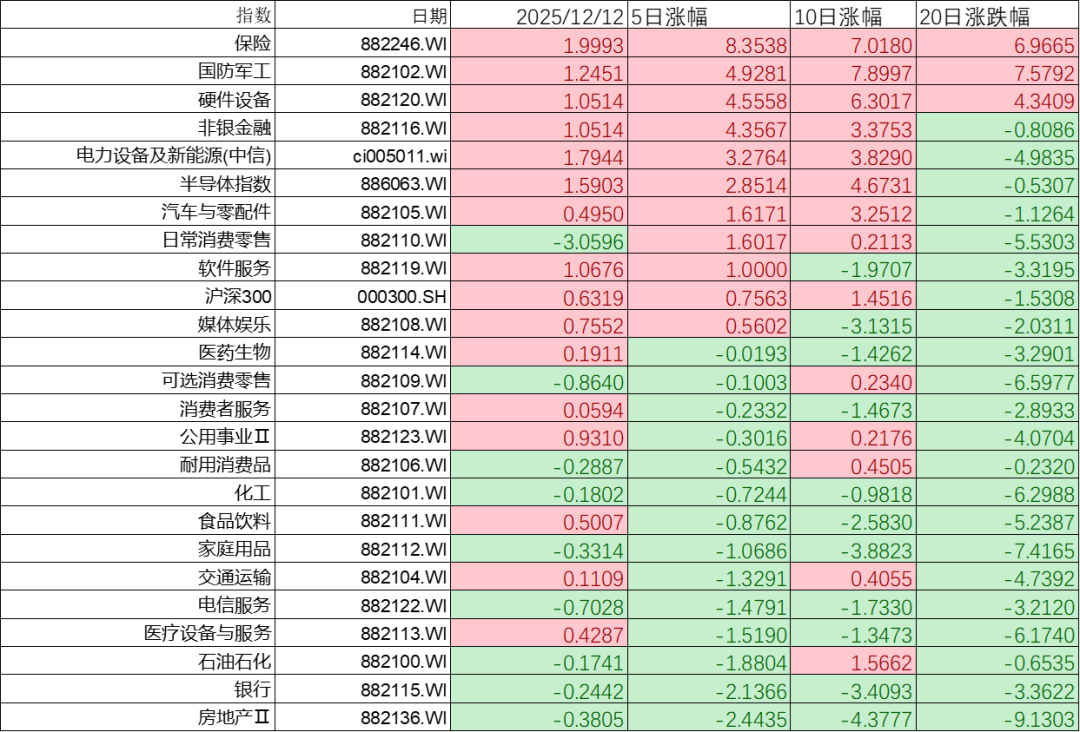 上周市场行业表现上保险券商、军工、硬件设备领涨,房地产、银行、石油石化、医疗设备等行业垫底。