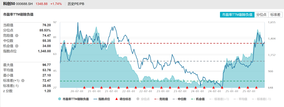 科创50注册制以来估值剔除负值PE分位数85%,PB分位数62%,处于高位的水平。