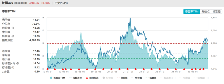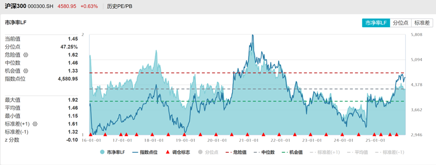 沪深300PE十年分位点80%,PB分位点47%,处于中高位。