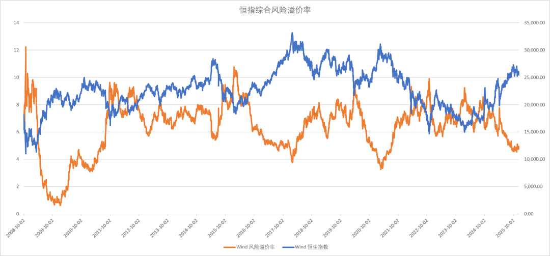 10年期美债利率4.19%,恒生指数以中美10年期国债平均收益率计算风险溢价率偏低。