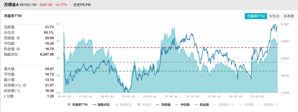 全A注册制以来估值PE分位数85%,PB分位数54%,处于中高位的水平。
