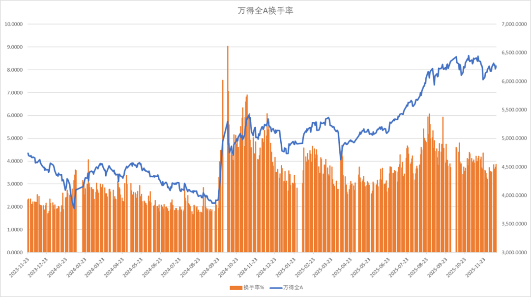 全A指数换手率提升。