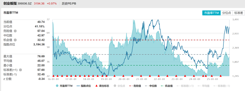 创业板指注册制以来估值PE分位数41%,PB分位数60%,处于中位的水平。