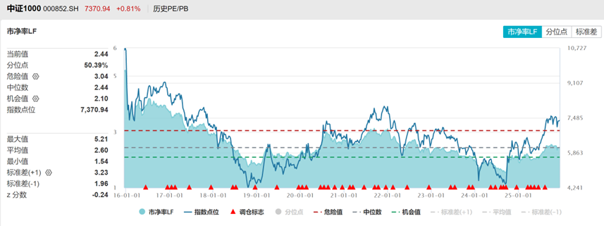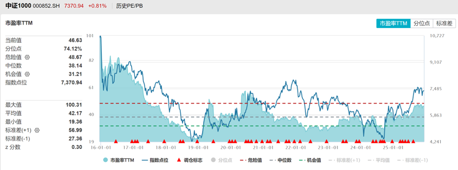 中证1000PE注册制改革以来分位点74%,PB分位数50%,估值中位。