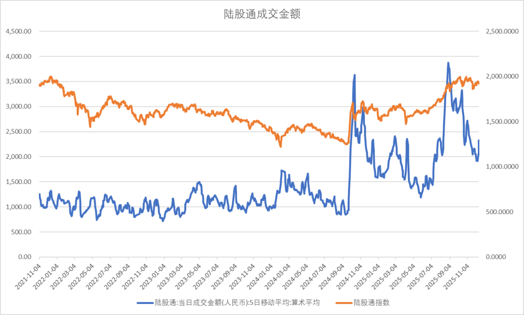 陆股通成交量上行,AH溢价率维持低位。