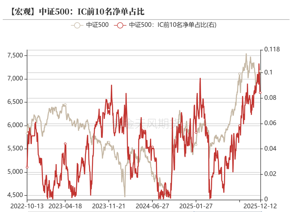 IC前十会员净空占比高位回落,平均基差贴水缩小,保值盘比例减少。