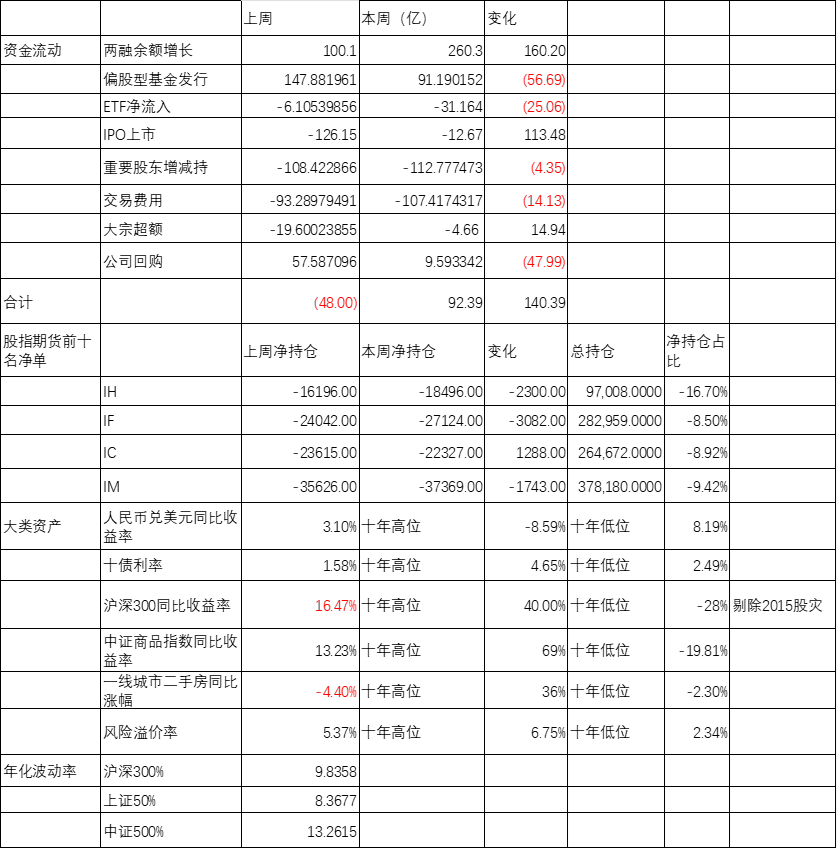 上周股市震荡,短期资金转向流入,两融杠杆资金流入加大,但ETF小幅流出,偏股型基金发行下降,IPO上市减少,产业股东减持维持高位,大宗交易增加,公司回购减少。